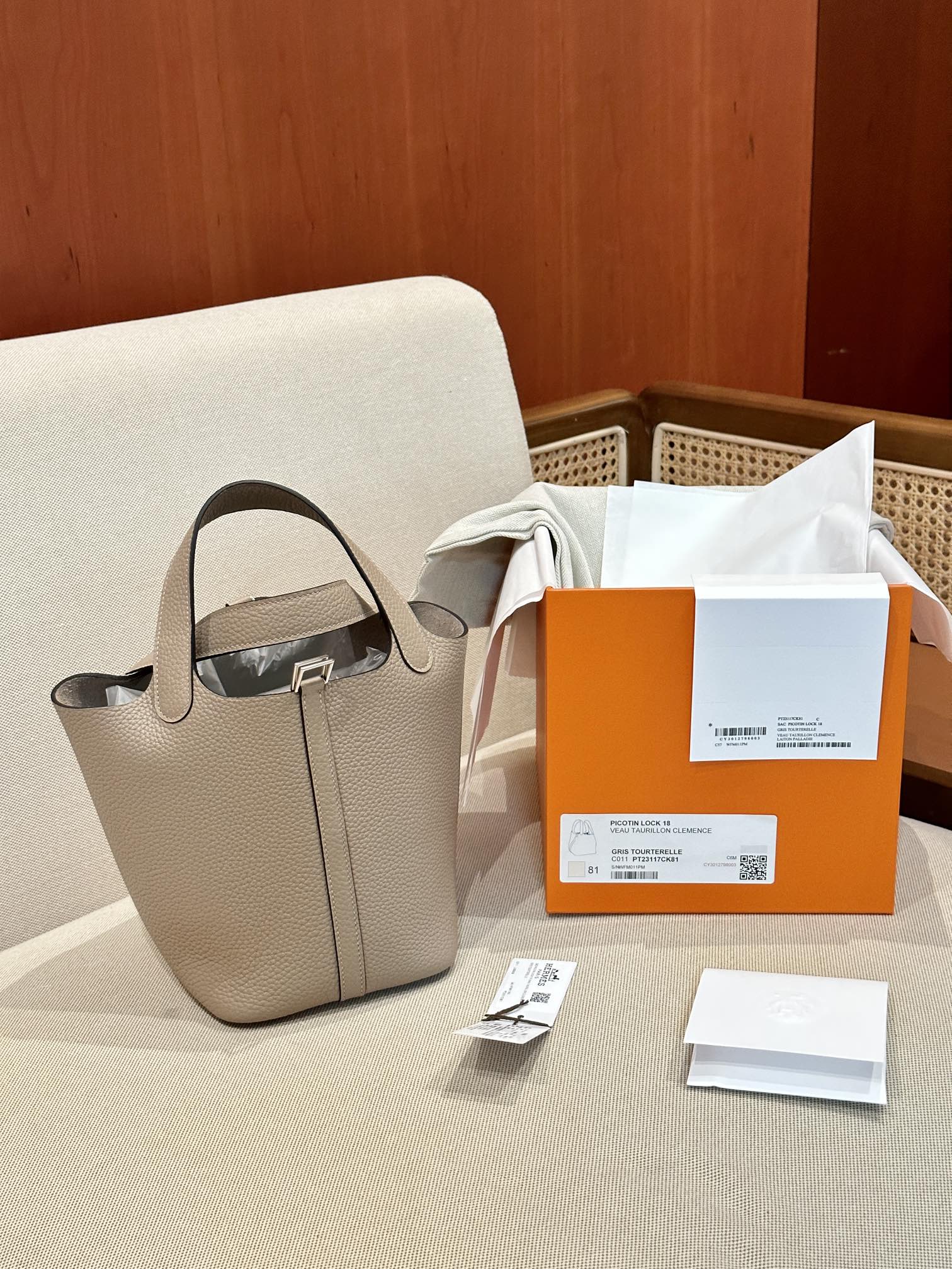 Minimal and functional, the Artisan Grade Hermès Picotin is beloved for its bucket shape and unlined interior. This version embodies the simplicity and leather quality that have made Hermès craftsmanship legendary, emphasizing the natural beauty of the hide and the precision of the artisan’s work.